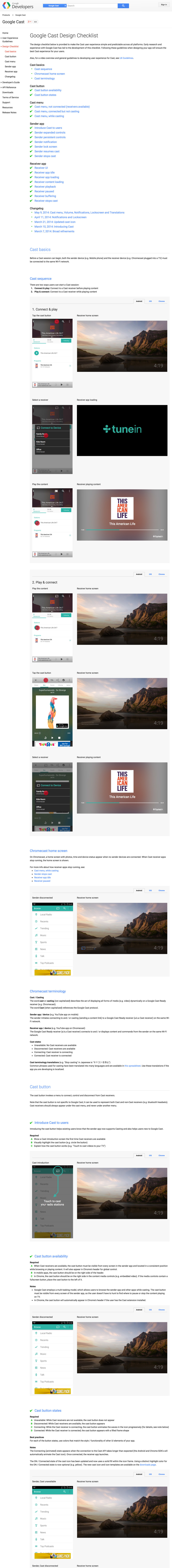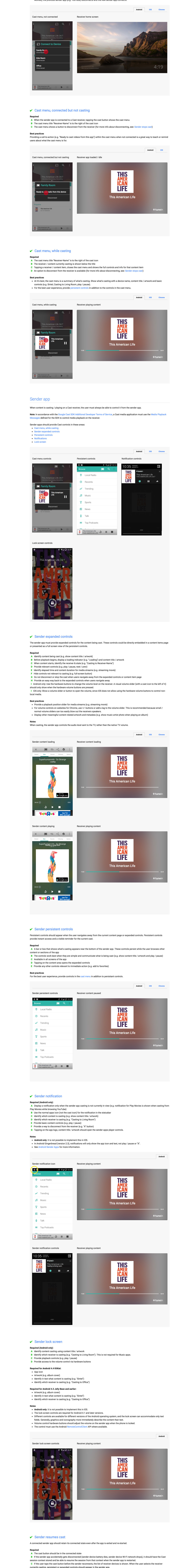 It wasn't enough that we had spec'd out the interactions - we had to comply, in detail, with the Cast design and user experience checklists.