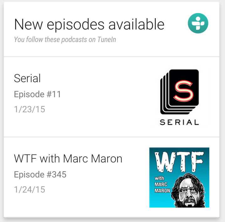 New Episodes Available: when a new podcast episode became available for a favorite piece of content that the user followed, we would notify them and deeplink directly into the play experience.