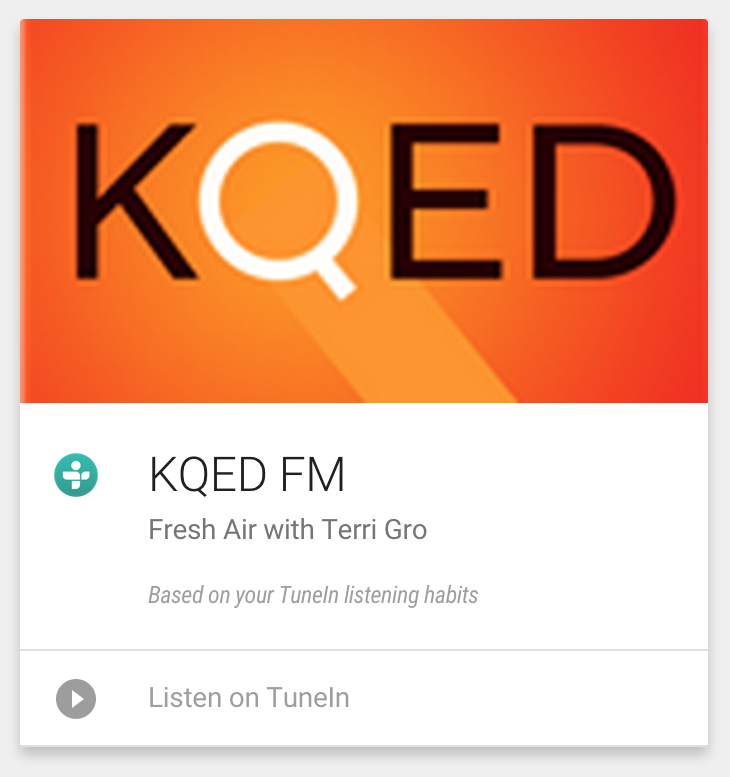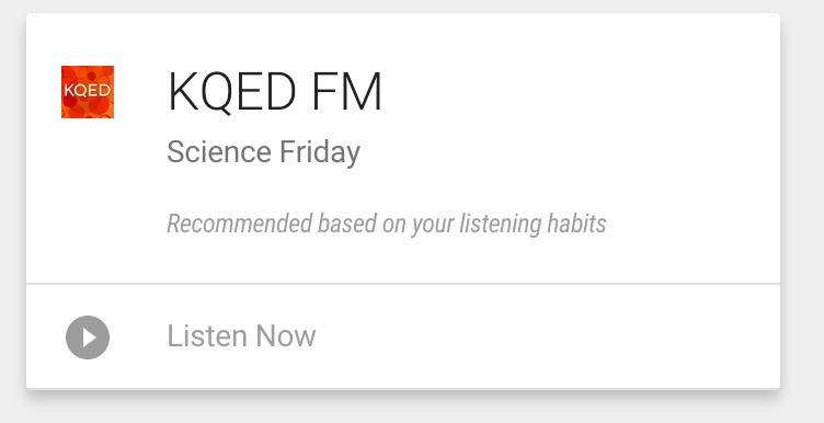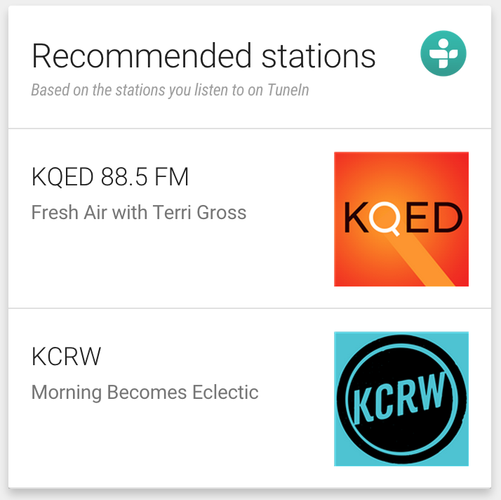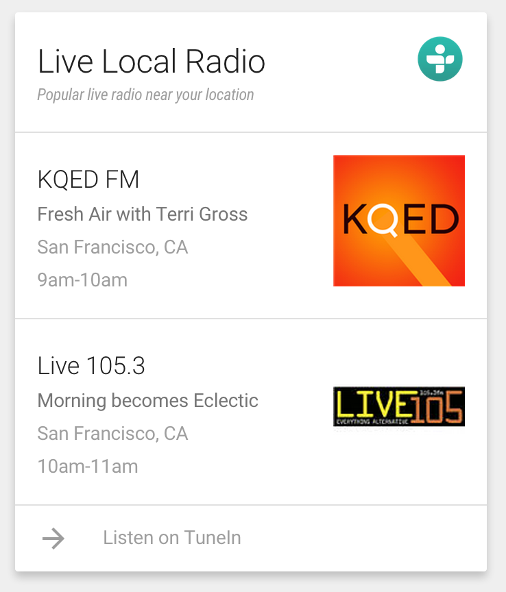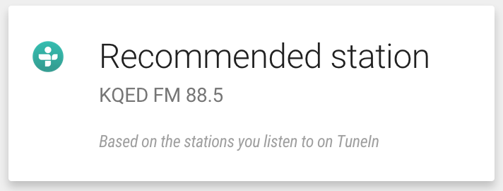 "Near You": I also proposed building out a location based card which would prompt a traveling user to explore radio near their location. Google Now often promoted items "new you" and this feature would help both TuneIn discovery as well as user discovery.