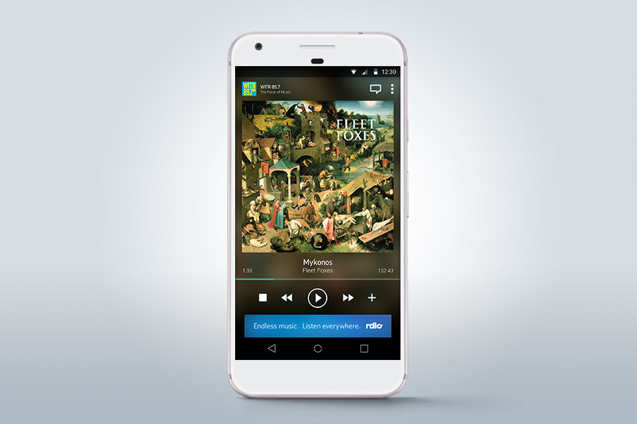 In this case I focused on album artwork and the "play / pause" controls - making both big and bold.When a user wants to stop their content, it's absolutely critical that they be able to do so in a moments notice. Searching for the pause button, or even worse, missing it when you attempt to pause is a terrible experience.